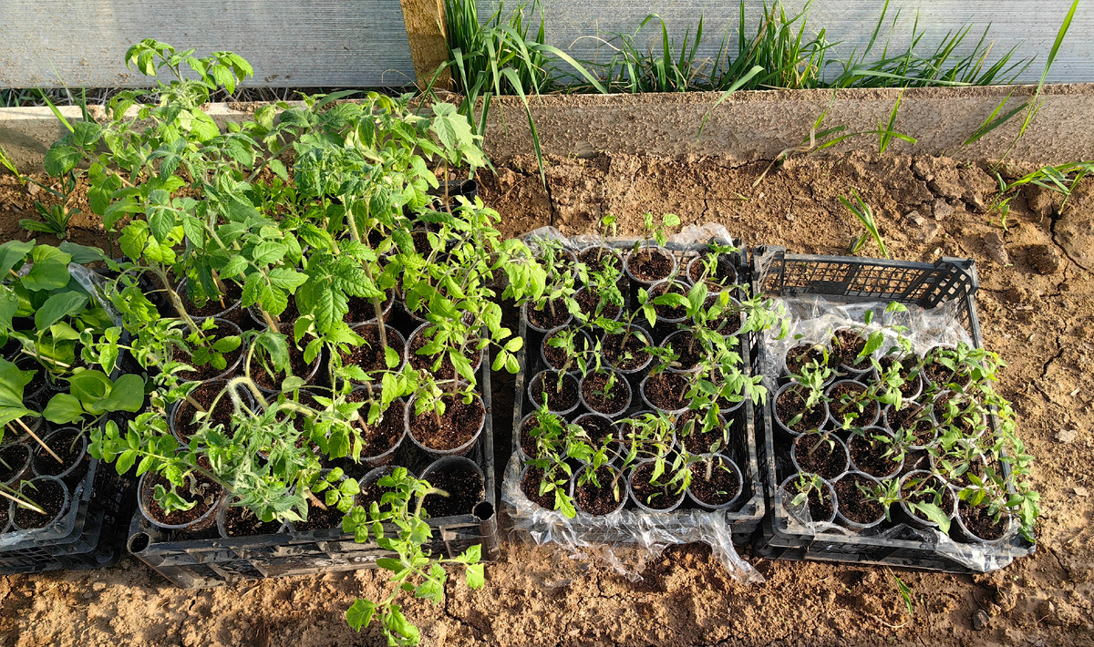 Итак, друзья, с большим трудом и перерывами на отдых мне таки удалось за 3 дня подготовить одну грядку и высадить первые рассадины. Что-то я даже не ожидала, что это для меня на столько трудно будет. Объем работы большой, поскольку осенью было не до чего и парник с теплицей ушли в зиму прямо со всем содержимым. То есть вот сейчас приходится чистить их, снимать весь укрывной с грядок, обрабатывать и удобрять землю, стелить новый спанбонд. Муж с чисткой очень помог, но стелила, обрабатывала и сажала уже я сама. Прямо чуть не развалилась))))) Парник почти закончен, но там только одна томатная грядка, вторую буду засаживать через неделю, после морозов. Там огурцы и перцы будут расти. Разница в размерах и состоянии у рассады космическая))) Но я решила высаживать все как есть. И сажаю в основном по два в лунку, потом срежу один, посмотрю который будет получше развиваться. Чахлики немного тронулись в рост. Видны всходы рядом более молодые - это я прямо в стаканы досевала на случай если вообще