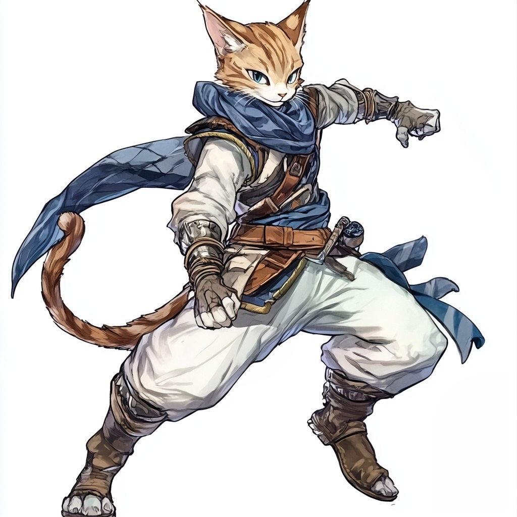 Создано на основе запроса: Fantasy concept illustration, Male, Humanoid cat, Tabaxi, Tail, Lynx type fur, Graceful, Smart, No weapon, European medieval travel style, White background, High quality, Exaggerated Jumping Pose --- Автоперевод: Фэнтезийная концепция иллюстрация, мужчина, гуманоидный кот, табакси, хвост, мех типа рыса, изящный, умный, без оружия, европейский стиль средневекового путешествия, белый фон, высокое качество, преувеличенная поза прыжков Как тебе вариант? 🤔 https://dzen.ru/id/65c0c65c86e4f837c27b24d7 #ИИ #AI #нейросеть #midjourney #art
