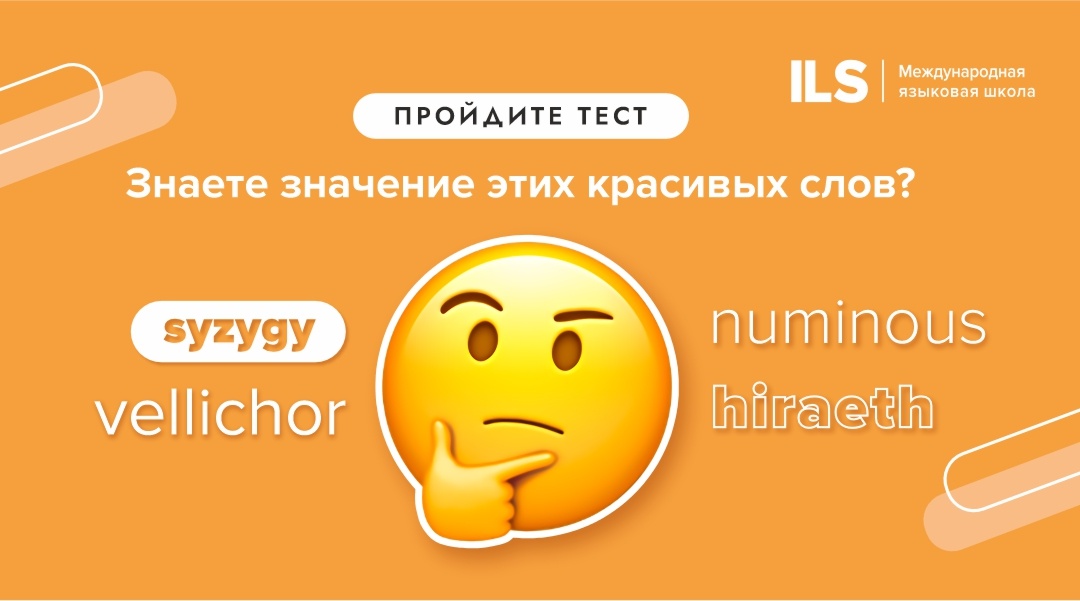 Английский язык богат не только на повседневную лексику, но и на невероятно поэтичные, редкие и красивые слова, которые звучат как музыка и несут за собой тонкие, глубокие смыслы. Есть такие английские слова, которые невозможно точно перевести – слишком тонки, слишком эмоциональны, слишком поэтичны. Они звучат, будто строчка из любимого стихотворения или аккорд из далёкой мелодии, знакомой с детства. Ответьте на 15 вопросов, вспомните, узнайте, почувствуйте…. Может быть, вы уже интуитивно знаете, что такое serendipity, или давно ощущаете в себе limerence, даже если не знали, истинного смысла этих слов. Готовы проверить, насколько глубоко вы чувствуете красоту английского языка?