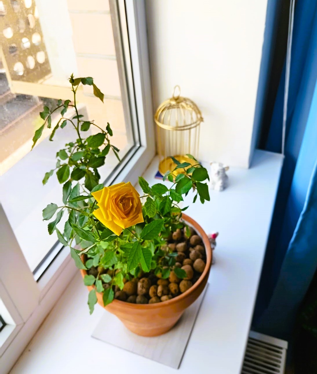 Всем привет и хорошего настроя! История такая, муж подарил на весенние праздники два горшочка с розочками из Магнита вместо букетов цветов. Два разных сорта, не вспомню название, красные и желтые. Спустя дня три я высадила их в горшочки, но не по правилам, а как умею.