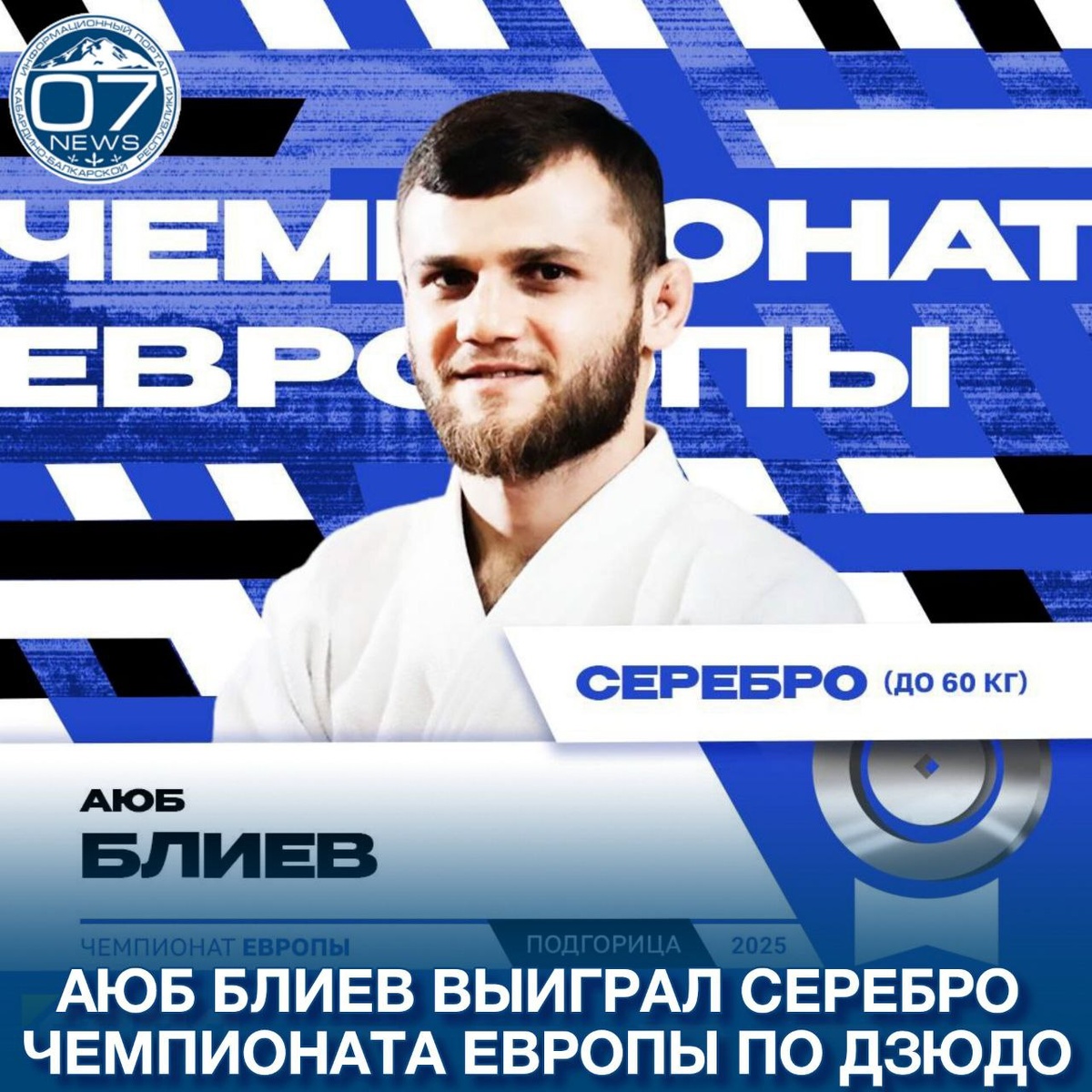 Аюб Блиев выиграл серебро чемпионата Европы по дзюдо В финале весовой категории до 60 кг уроженец Кабардино-Балкарии уступил в схватке за золотое очко титулованному грузину Георгию Сардалашвили. Медаль Блиева стала первой для сборной России на стартовавшем первенстве континента. Турнир в Подгорице (Черногория) продлится до 27 апреля.