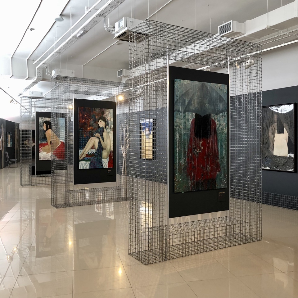 Зорикто Доржиев — современный бурятский художник, в его работах — микс метафизики, юмора и этнических мотивов. На этой выставке я провела больше времени, чем собиралась, всё никак не могла уйти. Застряла. Да и было где застрять — под нее отвели целый этаж, три больших зала. Не так давно в «Новом Иерусалиме» уже показывали работы потрясающего бурятского скульптора Даши Намдакова, и вот еще один талант. Великая степь соседствует с классическими темами и переосмыслением шедевров. В переходе к следующему залу повстречался почтальон. Почтовая тема — повсюду! Художник использует в своих работах и такие необычные материалы, как золотая фольга, текстиль, пуговицы, бархат. А еще аэрозольные краски и маркеры, как на этих портретах. Дети на его картинах такие беззащитные — с игрушками, с мороженым, посреди бетонных джунглей. Маски — материальные, металлические — «Вечная битва» (маски воинов) и «Вечная жизнь» (посмертные маски). Только в середине — силиконовые, соединяющие вечное с современным.