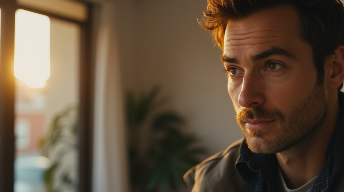 Артём вошёл на кухню — осунувшийся, с щетиной, но странно спокойный. Взгляд уже не такой потухший, как раньше.