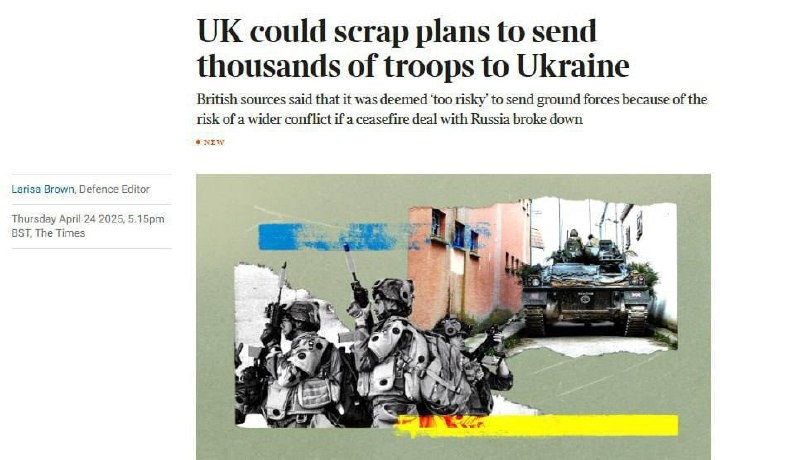 Лондон может отказаться от планов по отправке тысяч военных на Украину, пишет The Times Издание отмечает, что власти Британии сочли такой шаг "слишком рискованным" из-за опасности более масштабного конфликта в случае срыва соглашения о прекращении огня с Россией. @SPUTNIKBY