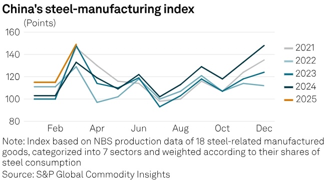 Но продолжение торговой войны с США может подорвать дальнейший рост производства. По оценкам Platts на основе правительственных данных, потребление стали в Китае в марте достигло самого высокого уровня за последние 6 лет, однако тарифные ограничения омрачают краткосрочные перспективы экспорта. Индекс потребления стали в обрабатывающей промышленности Китая, рассчитываемый Platts, в марте составил 149 пунктов, что на 16 пунктов больше, чем в предыдущем году. Индекс основан на данных о производстве Национального бюро статистики Китая по 18 видам продукции, требующей большого количества стали, которые распределены по семи секторам и взвешены в соответствии с их долей потребления стали. Основными факторами роста стали увеличение правительством субсидий на обновление отечественного оборудования и обмен потребительских товаров на новые. По их словам, краткосрочный ажиотаж по экспорту сталелитейной продукции в преддверии эскалации торговой напряженности между США и Китаем также помог производс