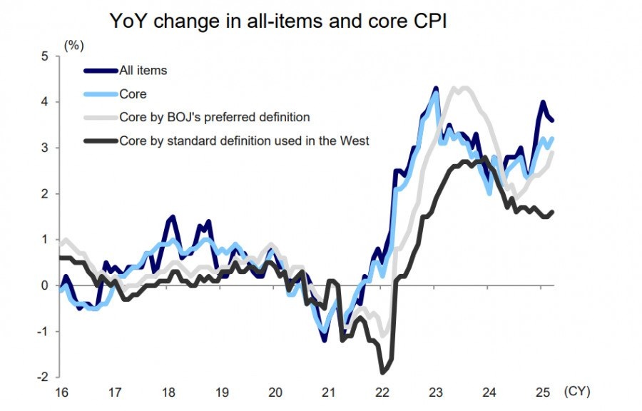 https://basechop.ru/wordpress/?p=39962 Опубликованный на прошлой неделе общенациональный индекс потребительских цен показал ускорение базовой инфляции в марте с 2.6% до 2.9%. Инфляционное давление явно растет, что в пользу дальнейшего повышения ставки Банка Японии. Рост инфляции в значительной степени обусловлен товарным сегментом, и, по мнению аналитиков Mizuho, он вряд ли замедлится в ближайшей перспективе, что же касается сектора услуг, то там рост менее выражен, но как раз здесь ожидается ускорение роста цен. Сегодня поздно вечером будет опубликован индекс цен в регионе Токио в апреле, он покажет развитие тенденции, и вполне способен спровоцировать рост спроса на иену, если также покажет рост. Пока Банк Японии не видит особой необходимости менять свою стратегию постепенного повышения ставки, учитывая высокую неопределенность ситуации с новыми тарифами США. Да, есть риск снижения прогнозов по ВВП, что будет в пользу замедления роста ставки, поэтому нужно сначала дождаться ясности