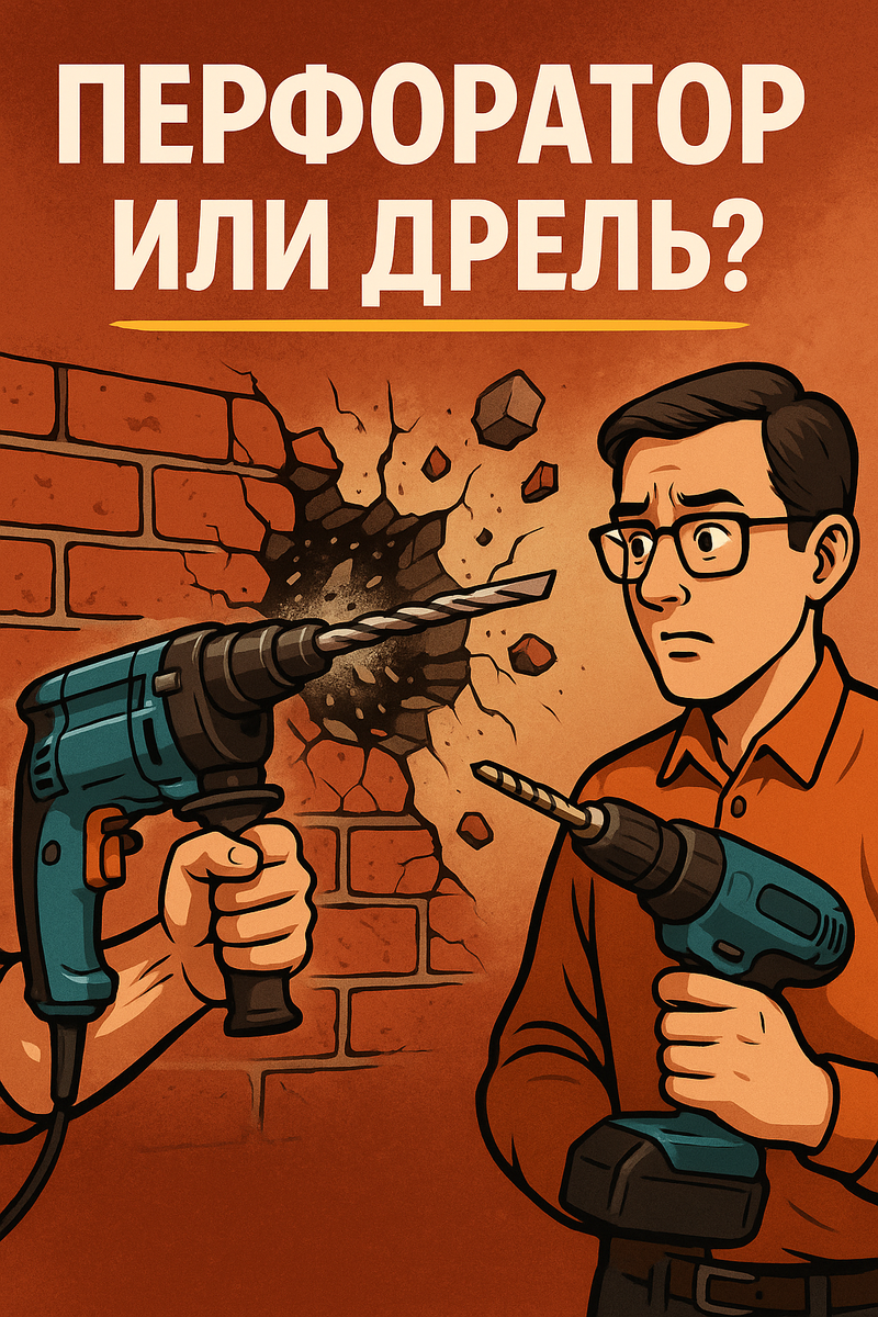 — Это движок умирает. И ты вместе с ним. Бери перфоратор SDS-plus, бур на 6 мм — и полочка будет висеть быстрее, чем твоя дрель нагреется. Интеллигент: