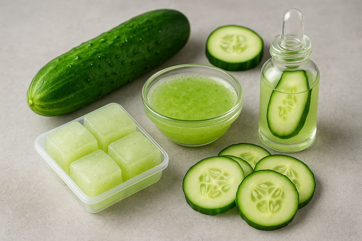 Когда говорят «сыворотка для лица», сразу представляется маленький пузырёк, капелька за тысячу рублей и надежда, что кожа вдруг станет как в 20. Я тоже верила в это. Пока не открыла холодильник — и не нашла там один овощ, который дал моей коже больше, чем любые банки с золотом и пептидами. Это огурец. Да-да, обычный, зелёный, прохладный огурец, который мы привыкли класть в салат. Только теперь он у меня — в косметичке. Всё дело в составе: Но главное — это всё в натуральной форме, без консервантов, отдушек и агрессивной химии. Мой лайфхак очень простой, но эффективный: 1. Огуречный лёд