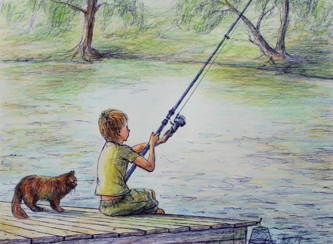 Однажды ночью у меня крутило живот, я спал очень неспокойно, раза три просыпался и в итоге часа в 3 ночи я решил пойти на рыбалку один. Я люблю одиночество на рыбалке, ну или рыбалку, когда другие люди не забивают голову своими историями или вопросами. Вообщем отправился я ловить рыбу, взял, удочку и червей. Состояние моё было не очень, что - то мутило, крутило, хотелось спать. После сигареты заслезились глаза, закружилась голова. Было темно, я неспеша доковылял до реки минут за 15. Рассвет ещё не начался, мобильного телефона у меня не было, был только свет фонарей с моста и я надел червяка на крючок и забросил леску. И ни клевало ничего, темень хоть глаза коли, даже Капитана не было, вот зачем я сюда припёрся? Пришёл Димкин дед через полчаса. Редкий летний день он не приходил ловить на удочку уклейку, в основном дед уже стоял, щурил глаза на поплавок и довольно часто вытаскивал селявку. У него не было ведра, у него была обычно пустая баклажка на 3 литра из под пива с ручкой и с отрез