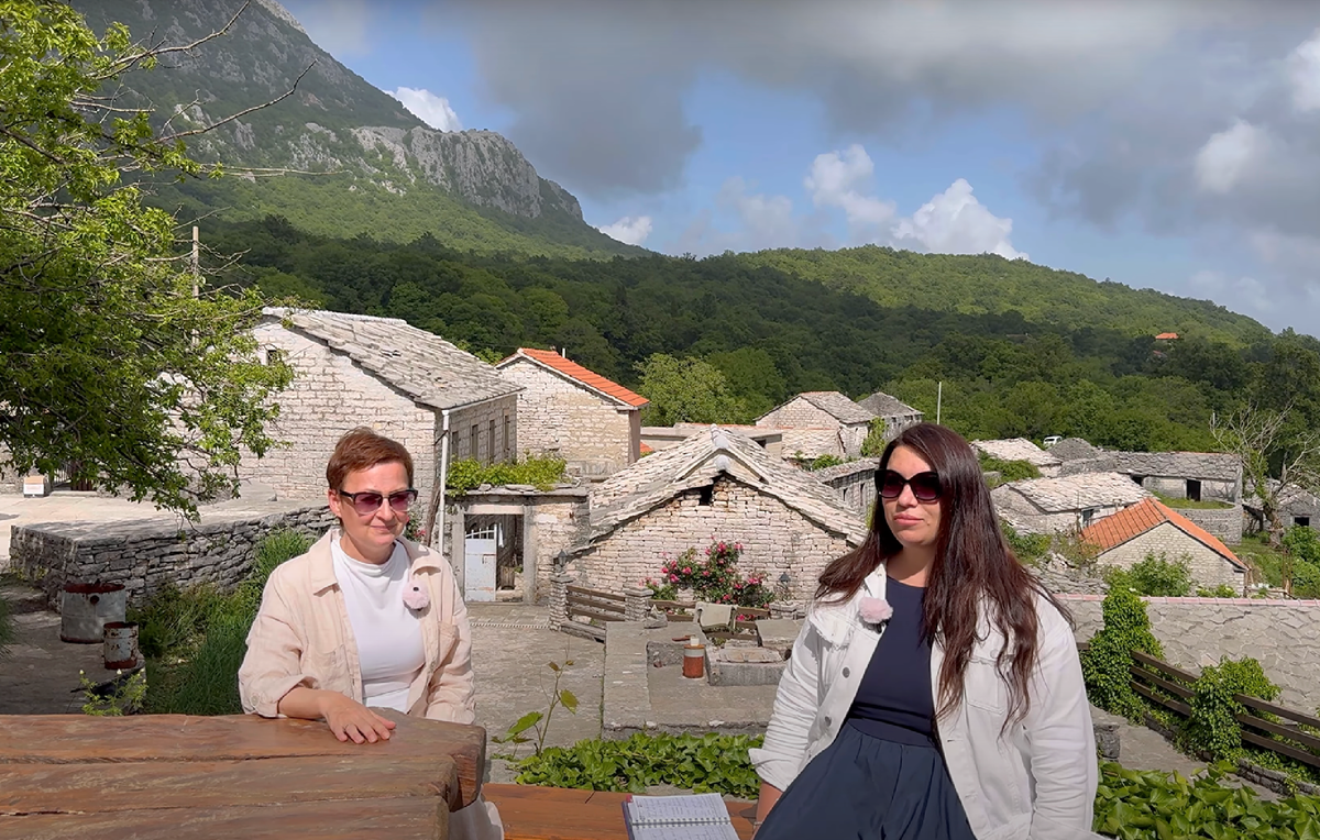 Ирина:- Добрый день. Сегодня солнечно, хорошее настроение. Мы забрались высоко в горы. Мы по-прежнему находимся в окрестностях Герцег-Нови. Уникальное место. Единственное полностью каменное село — Жлиеби.