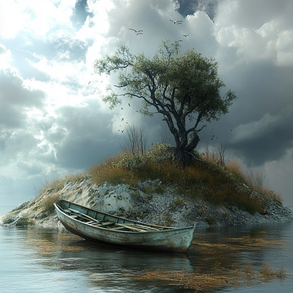 Создано на основе запроса: a stranded rowing boat on an island, slightly stormy, cloudy weather , show some of the island itself --- Автоперевод: Случайная гребная лодка на острове, слегка штормовая, облачная погода, покажите некоторые островки Интересно получилось? 🤔 https://dzen.ru/id/65c0c65c86e4f837c27b24d7 #ИИ #AI #нейросеть #midjourney #art