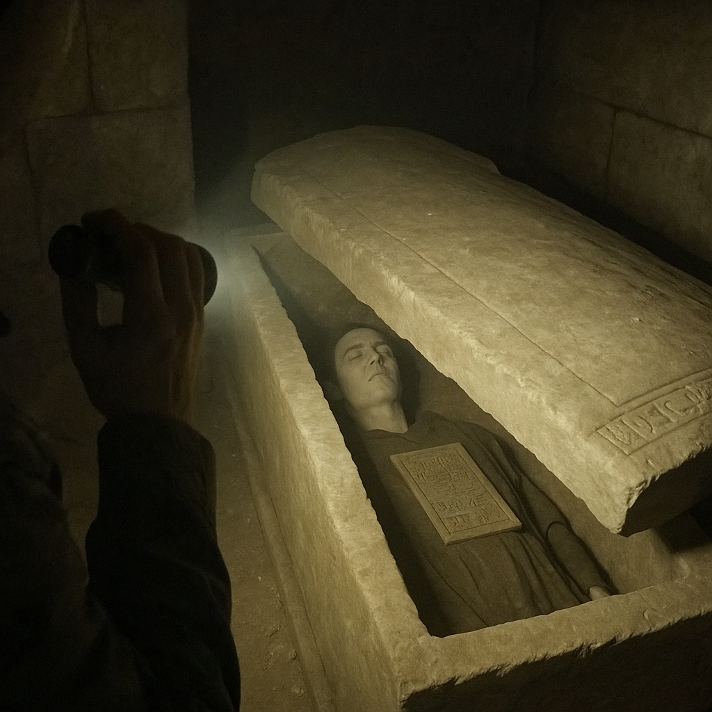 Этой новостью не поделились по телевидению. Её не комментируют официальные лица. Но она уже обсуждается в закрытых научных кругах. И если это правда — всё, что мы знали об истории, скоро рухнет. 20 апреля 2025 года группа строительных рабочих в пригороде Кайсери (Центральная Турция) наткнулась на нечто, что сначала приняли за древнюю цистерну. Однако углубившись, они обнаружили огромную каменную плиту с символами, не идентифицированными ни одним из известных алфавитов. Прибывшие на место археологи вскоре сообщили: это саркофаг. Но его возраст — около 7000 лет. Что невозможно. Официально. И вот что стало настоящим шоком: внутри лежит тело. Сохранившееся. Неподвластное времени. По словам одного из источников, пожелавшего остаться анонимным, тело "выглядит так, будто человек заснул час назад". Ни мумификации, ни разложения. У мужчины необычные черты лица, которые не соответствуют ни одной известной антропологической группе. Но главное — это табличка, лежащая на груди. На ней выгравирова