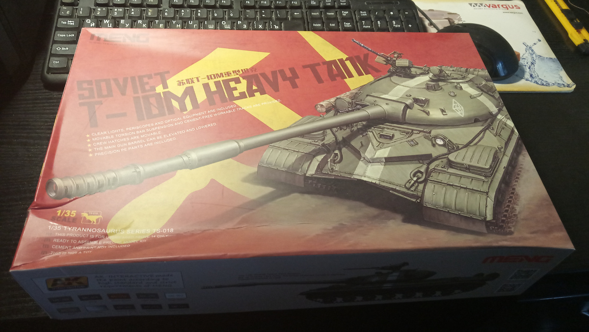 Собрал очередную модель в масштабе 1/35. Советский тяжелый танк Т-10М от фирмы "MENG". Качество литников и пластика - великолепное. Сборка прошла абсолютно без проблем. Облоя практически не было, допиливать детали по месту не пришлось. Сборкой очень доволен.