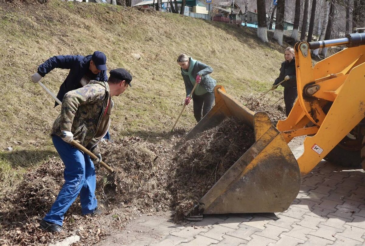 🌍💪 В Облученском районе продолжаются субботники по уборке общественных мест в рамках месячника санитарной очистки