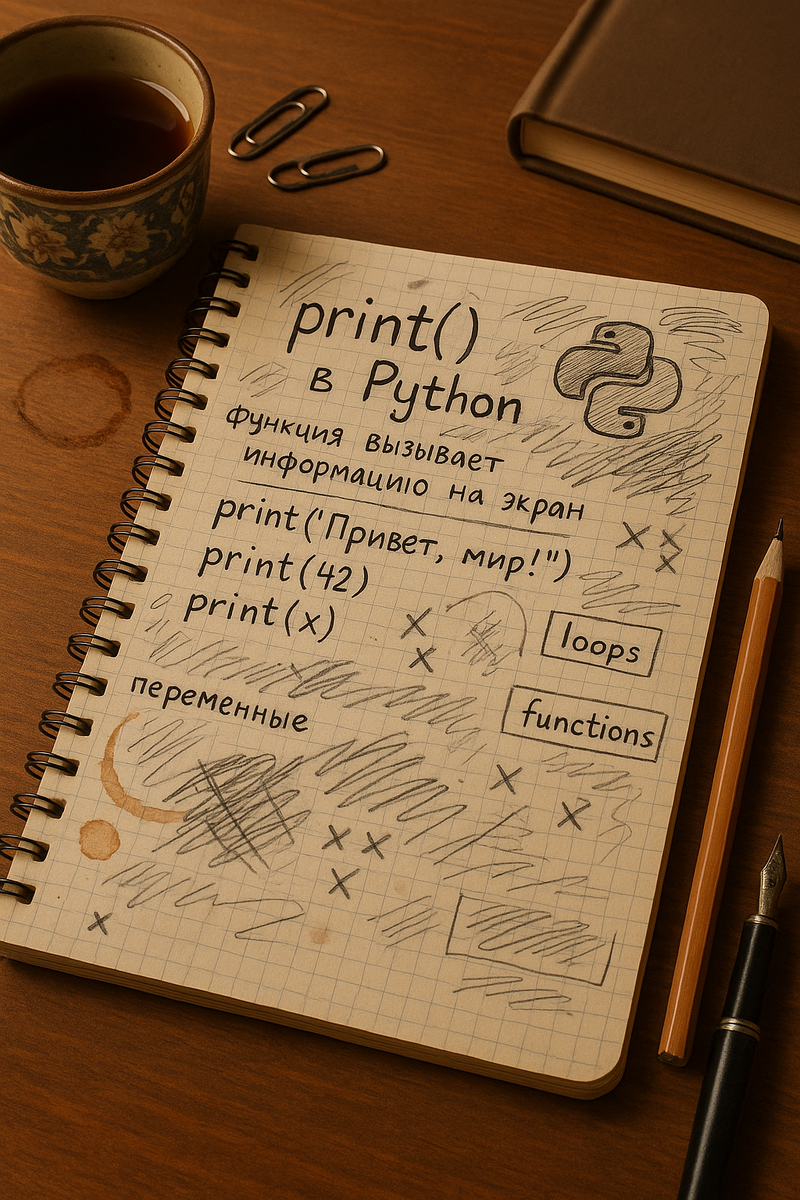📓 Страница 2 Дата: 25 апреля 2025 Заголовок: 🖨️ Моя первая команда: print() Сегодня я познакомился с командой print(). Это команда, с которой начинается взаимодействие программы с пользователем. С её помощью можно выводить информацию на экран, например, так: ЗАЧЕМ ОНА НУЖНА?⁉️ ✅Отладка — чтобы увидеть, что происходит в программе. ✅Взаимодействие с пользователем — показывать текст, запросы, результаты. ✅Понимание программы — помогает увидеть, что происходит внутри программы. Можно сказать, что эта команда — как окно, через которое программа общается с пользователем. Всё, что мы пишем внутри print(), появляется на экране. ПРИМЕРЫ ИСПОЛЬЗОВАНИЯ: Просто и удобно! Начинаю осваивать основы Python и делюсь с вами. Подписывайся на канал, если хочешь учить Python с нуля — вместе шаг за шагом! 🐍