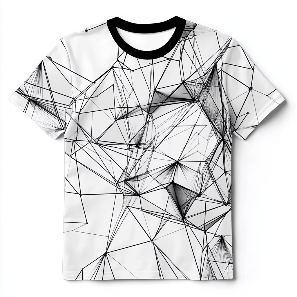 Создано на основе запроса: a t-shirt with a print of geometric wireframe patterns