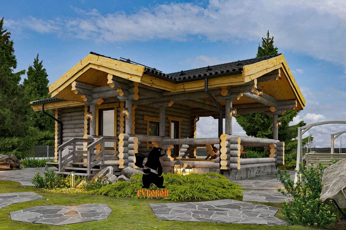 В проекте: небольшая комната отдыха с кухонной зоной и вторым светом, русская парилка на дровах, моечная, санузел, большая веранда.