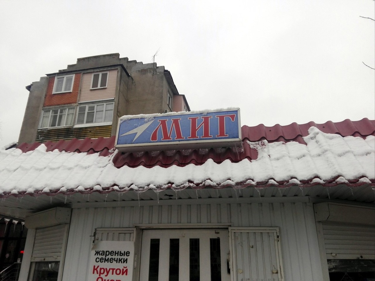 Продуктовый ларёк и поставленный в его честь самолёт через дорогу.