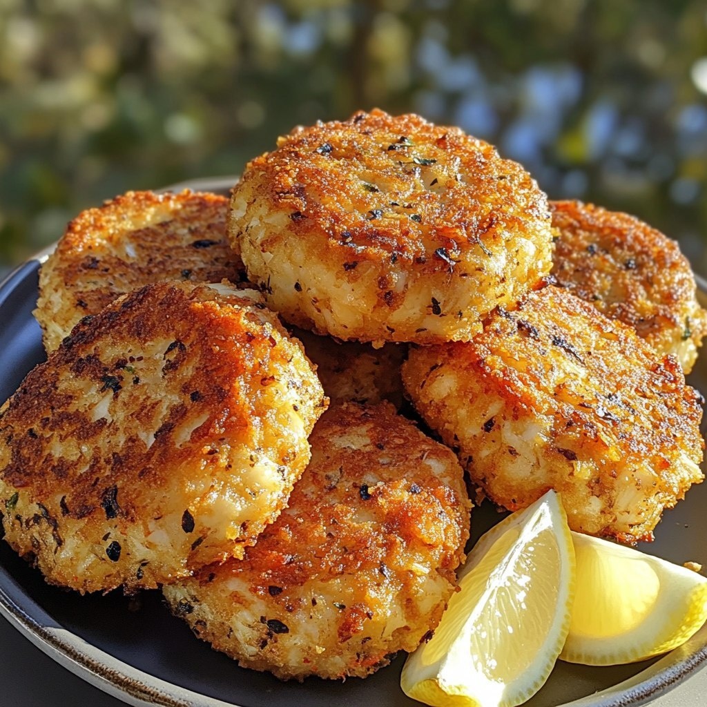 Создано на основе запроса: Simple Photorealistic Extra & ultra-close-up of Vibrant Homemade Original Old Bay Crab Cakes on a plate with lemon wedges, taken with an iphone 15 pro camera, JUICY mouthwatering, so yummy, delicious, fresh and vibrant colors, outside background, 4K resolution, highly detailed, food photography,