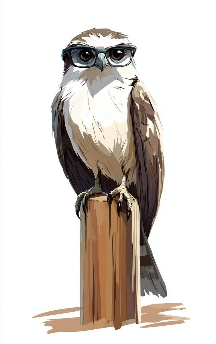 Создано на основе запроса: A simple illustration of a white-tailed kite. the kite is wearing glasses. the kite is perched on a pier post at a wharf in california. dude! include white background. --- Автоперевод: Простая иллюстрация белого хвоста. Интересно получилось? 🤔 https://dzen.ru/id/65c0c65c86e4f837c27b24d7 #ИИ #AI #нейросеть #midjourney #art
