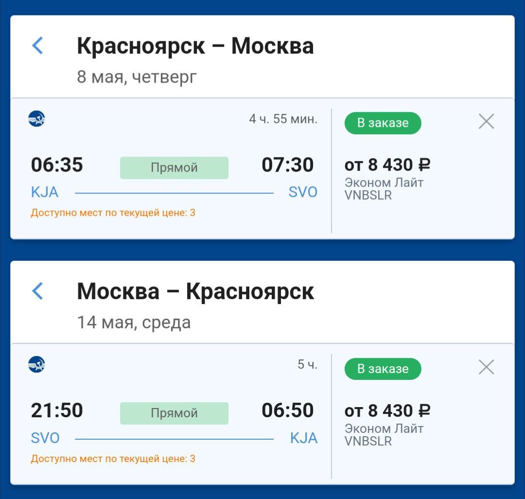 Господин "Аэрофлот" выложил билеты в Москву НА МАЙСКИЕ по приятной цене. https://aviasales.tp.st/adUSOljS От 16800₽ ↔️ да, это теперь приятно, тем более на майские. 😏 Ищите со 2 мая, билетов, как всегда, очень мало! #MOW @KJA