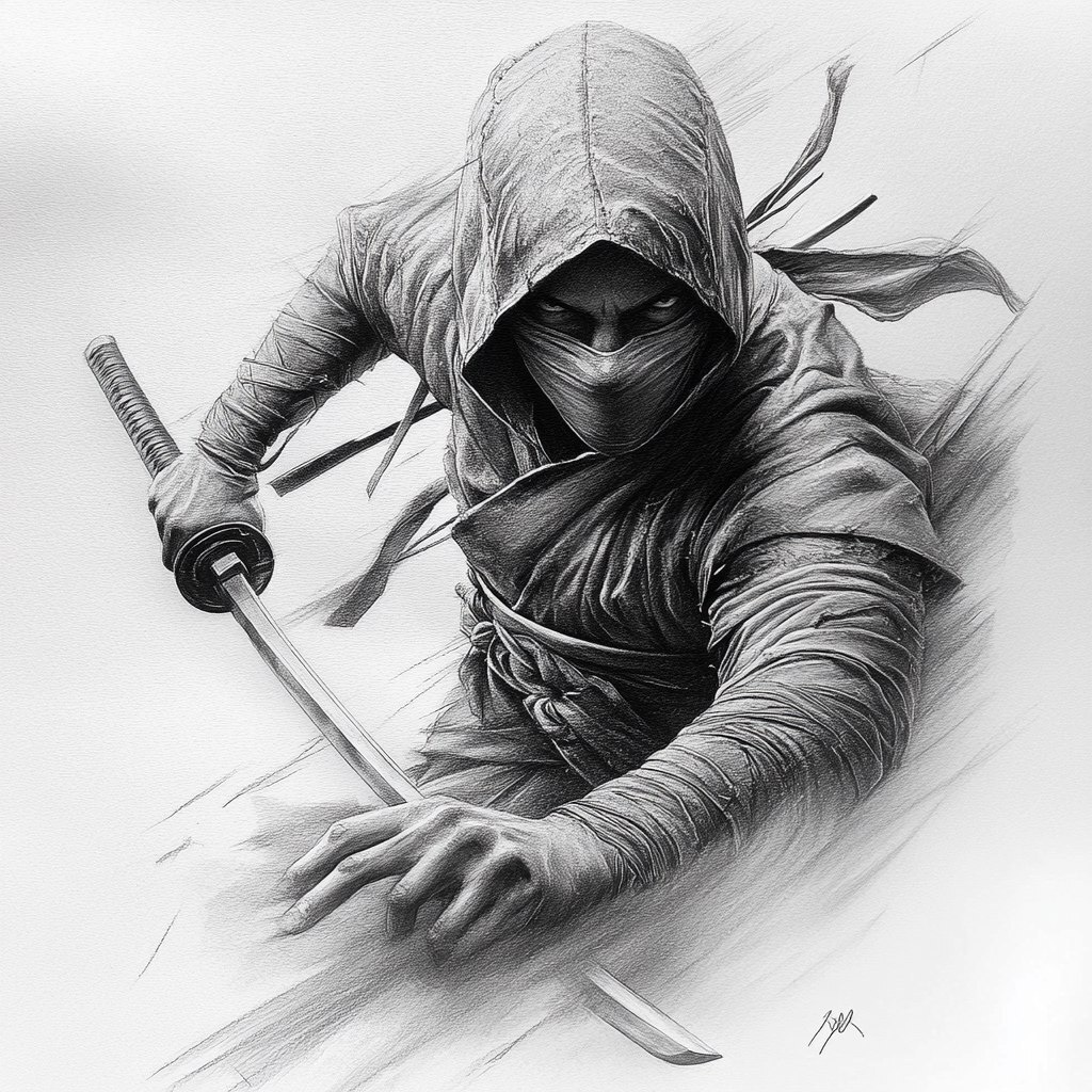Создано на основе запроса: tattoo design , ninja warrior, ready for fight. Full figure 3d, hyperrealistic. Highly detailed. Hd. Pencil drawing --- Автоперевод: Дизайн татуировки, ниндзя воин, готов к бою. Красиво вышло? 🤔 https://dzen.ru/id/65c0c65c86e4f837c27b24d7 #ИИ #AI #нейросеть #midjourney #art