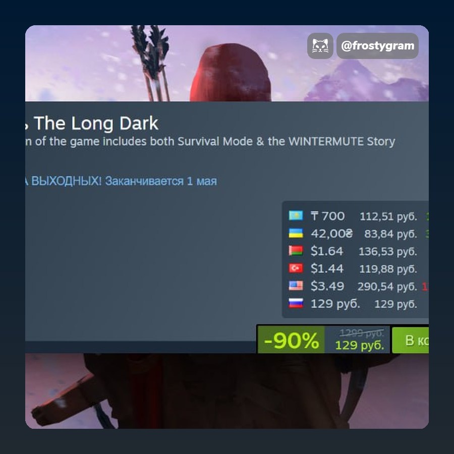 The Long Dark в настоящее время доступен с щедрой скидкой в 90%. До 1 мая можно приобрести эту выживалку всего за 129₽ / 700₸ / 42₴. Также в мае планируется выход обновления для ПК, которое включает улучшенную графику. Ознакомиться с деталями можно здесь.