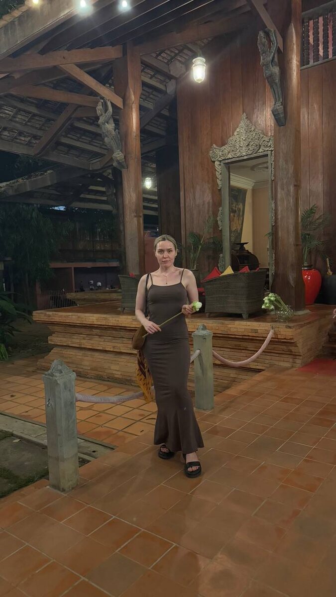 Apsara Theatre: Путешествие в мир кхмерской культуры 🌟🎭 Когда мы были в Сиемреапе, мы решили посетить местный Apsara Theatre — старейший театр города, который уже много лет играет важную роль в сохранении традиционных кхмерских танцев. И это был действительно уникальный опыт! Как проходит вечер в Apsara Theatre? Всё начинается с ужина. Столы стоят очень низко, с отверстиями в полу для ног, а гости сидят рядом друг с другом, создавая атмосферу близости. Нас кормили традиционными кхмерскими блюдами, что само по себе было интересным опытом. Однако час на еду показался немного долгим, и мы уже начали скучать… Но как только началось представление, скука моментально улетучилась! Выступление: искусство, костюмы и магия танца Каждый танец представлял собой отдельную историю, и мы были поражены, насколько артистично и выразительно танцоры передавали их с помощью движений. • Танец Апсар: Это была история небесных танцовщиц. Медленные, грациозные движения, невероятные изгибы пальцев и рос