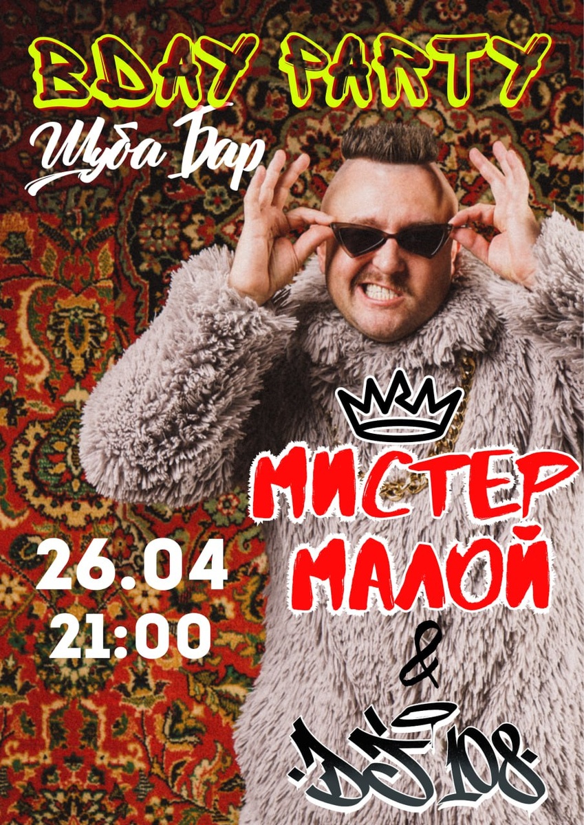 Шуба отмечает День рождения 🪩 Легендарному празднику — выступления настоящих легенд русского хип-хопа! В программе бодрый сет от именитого Dj 108 и жара от Мистера Малого. 📞 Бронь столов: +79313300002 🗓 26 апреля 21:00 💵 Вход свободный 📍 Некрасова, 34 Подписывайся на Пойдем выпьем