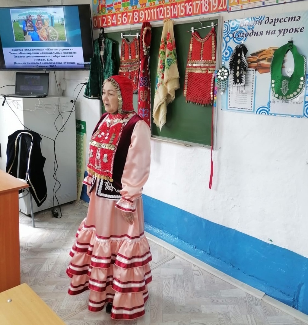 Она ознакомила с элементами башкирской одежды, рассказала о ҡашмау, нагрудниках и стилизованных украшениях.Ветеран педагогического труда Райля Салимьяновна Кадырова провела в начальной школе д. Абдулгазино урок, посвящённый Дню национального костюма.