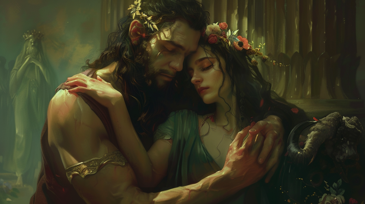 В греческом мифе Персефона — дочь богини урожая Деметры. Беззаботная, цветущая, невинная. Пока однажды её не похищает Аид — владыка подземного мира. Он увозит её в мрачные глубины царства мёртвых. Мир наверху замирает в скорби: земля перестаёт плодоносить, деревья сбрасывают листву, наступает зима.