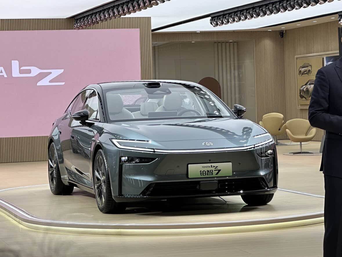 🌟Toyota представила электрический аналог Camry😍 На автосалоне в Шанхае Toyota отметилась товарным экземпляром электромобиля bZ7, крупногабаритного седана бизнес-класса, созданного эксклюзивно для КНР в партнерстве с GAC и предназначенного для производства силами совместного предприятия GAC-Toyota в Гуанчжоу. За исключением С-образных блок-фар, характерных для большинства современных Тойот, bZ7 стилем мало походит на автомобили марки. Скорее, Toyota bZ7 — это очередная вариация, более или менее удачно обыгрывающая скупой на эмоции стиль Tesla с упором на аэродинамику. Электромобиль имеет покатую крышу, бесшовно перетекающую в задние стойки, которые заканчиваются в считанных сантиметрах от края «кормы». Поскольку Toyota bZ7 — это не лифтбек, а седан, чтобы для доступа в багажник не пришлось вставать на корточки, проем протянули частично на пространство, которое должны были отдать заднему стеклу. По компоновке салона Toyota bZ7 — типичный электромобиль из КНР, с огромным дисплеем мул