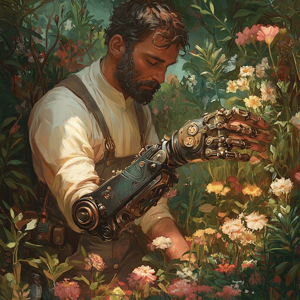 (Англия, 1899 год) Эдвард сжал гаечный ключ так, что металл вмятился в ладонь. Его правая рука, ампутированная после рокового взрыва у холмов Мафекинга, всё ещё болела — призрачной болью, которую не заглушали ни морфий, ни виски. Но сегодня он закончил её. Её — механическую руку с пальцами из полированной бронзы, шестернями, скрытыми под кожей оленьего пергамента, и пружиной, скрученной так туго, что она звенела, как струна арфы. Протез должен был стать орудием мести. Эдвард хотел создать машину, способную раздавить горло генерала, пославшего его полк в ловушку. Но когда он впервые прикрепил руку к культе, та потянулась к увядшей розе в вазе — последнему подарку Клары. Бронзовые пальцы сомкнулись вокруг стебля, и лепестки, будто вдохнув жизнь, расправились, заиграли бархатом. Эдвард уронил ключ. Внутри механизма, среди витков спирали, он увидел уголок бумаги. Письмо. «...сегодня видела, как старый дуб у реки выпустил новый побег из трещины. Надежда, мой милый, всегд