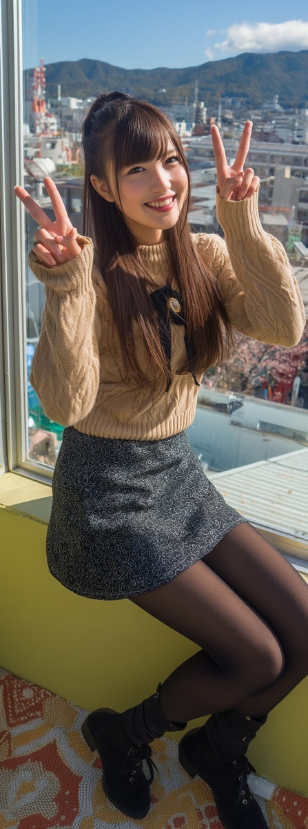 Создано на основе запроса: Japanese 22yo woman, front shot, straight shot, Nogizaka46, beautiful long hair combed through, peace sign, rectus abdominis, oblique abdominal muscles, transverse abdominal muscles, smiling, sitting in a cafe in the morning, a cafe on a mountain overlooking Tokyo, professional eye makeup, eyeshadow, eyeliner, eyelash perm, eyelash extensions, eyelash perm, makeup by a professional makeup artist, perfect eyes, knee, quadriceps, rectus femoris, adductor femoris, mini skirt, knee, quadriceps, triceps surae, shot with iPhone16pro, highly , --- Автоперевод: Японская 22 -летняя женщина, передний выстрел, прямой выстрел, ногизака46, красивые длинные волосы, прочесываемые, знаком мира, прямой кишки, косо Неплохо выглядит? 🤔 https://dzen.ru/id/65c0c65c86e4f837c27b24d7 #ИИ #AI #нейросеть #midjourney #art