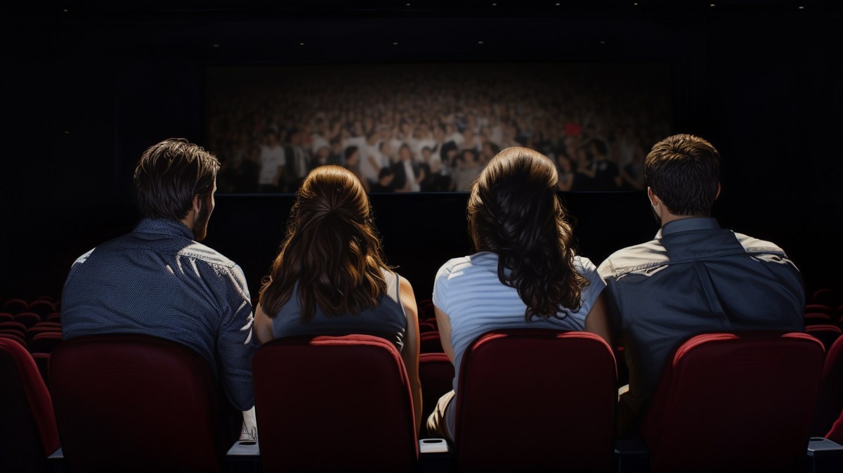 Создано на основе запроса: back view of four people sitting in a theater, photorealistic, ultra realistic, ultra detailed, 8k