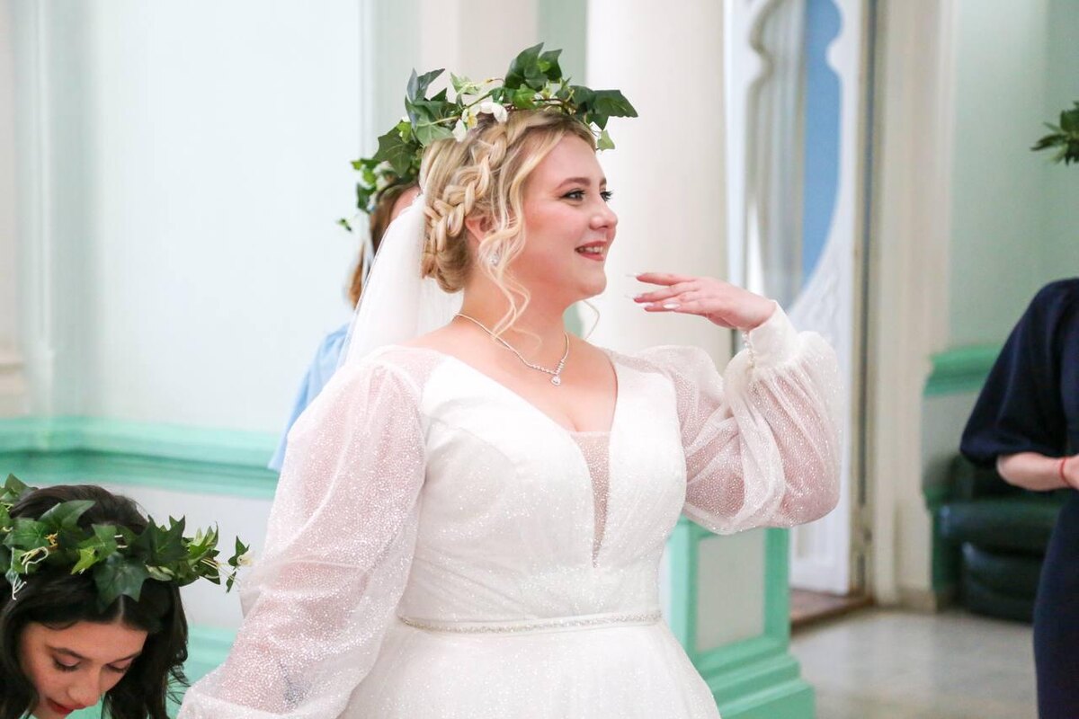 История любви Валерии и Олега Тимаковых началась три года назад на дискотеке Астраханского государственного университета. «Это была обычная вечеринка в честь начала учебного года, – вспоминает Валерия, – но именно там я впервые увидела Олега». Пара начала встречаться, а 1 января 2023 года Олег сделал Валерии предложение. «Я долго готовился к этому моменту», – признается Олег. Молодые люди решили пожениться именно на Красную горку. В 2024 году он выпал на 12 мая. «Мы знали о традициях этого дня и хотели, чтобы наша свадьба была особенной», – рассказывают молодожены. На Руси Красная горка знаменовала начало свадебного сезона. В этот день парни и девушки разжигали костры, устраивали хороводы, сватались и заключали браки. Вот и Валерия с подругами стали участниками традиционного славянского обряда, прошедшего в местном Дворце бракосочетания. История Красной горки уходит корнями в языческие времена, когда праздник был связан с почитанием весенних богов и встречей весны. Впоследствии древние