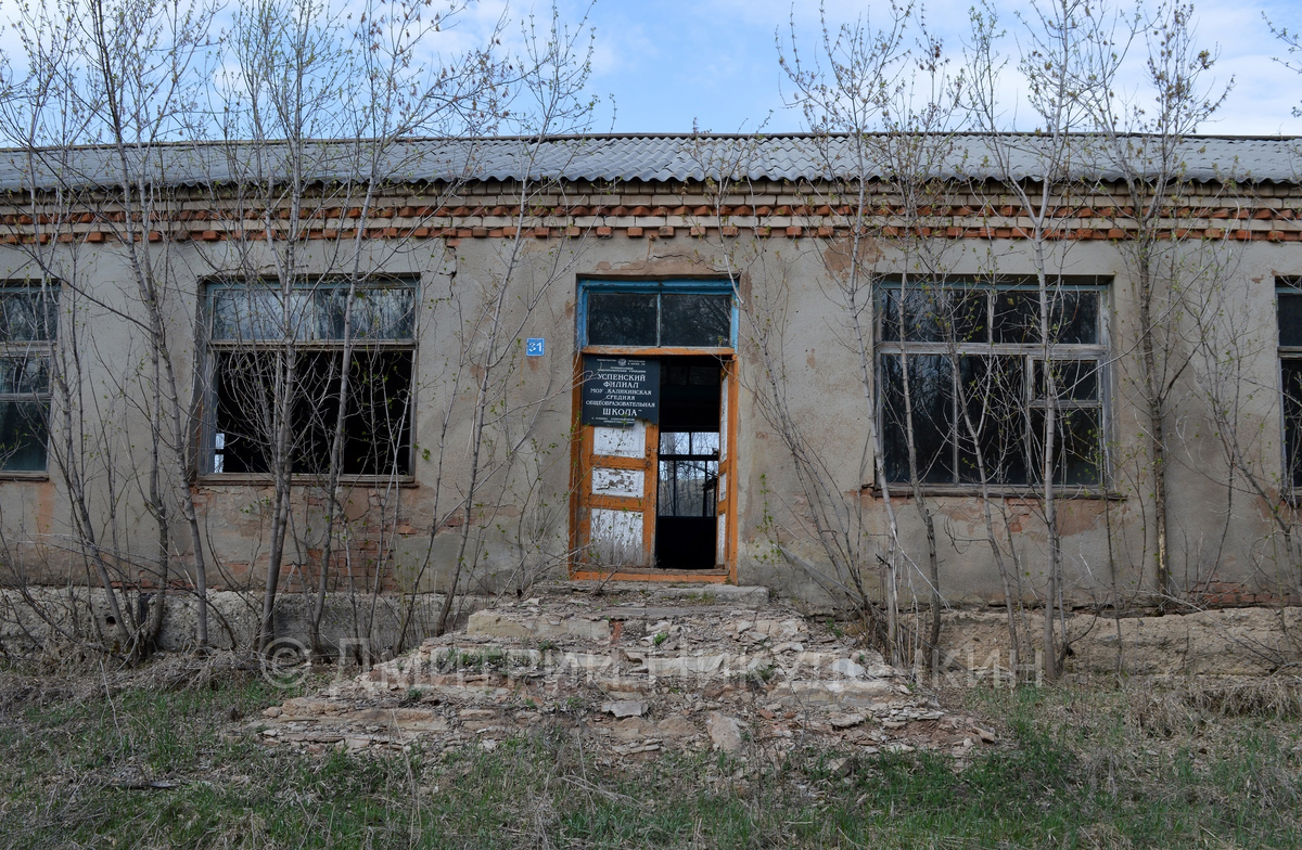 Такой печальной картины я ещё не видел... Это заброшенное село Успенка в Александровском районе. Его основали переселенцы из Тверской и Курской губерний в XIX веке. Последний раз я был здесь 9 мая 1999 года на открытии обелиска местным жителям, павшим в годы Великой Отечественной войны. В тот день по инициативе известного оренбургского педагога, основателя нескольких школьных музеев (в т.ч. музея "Память" в 18-й школе) Александра Захаровича Зенова в Успенку организовали вместительный автобус для оренбургских школьников. К ним присоединилась моя мама с учениками, а также я. Поездка была очень длительная, 4 часа в одну сторону. Я сидел на переднем сиденье, около водителя, и хорошо видел дорогу. По пути проезжали гору с надписью "Миру — мир!", Булановский родник и другие объекты. Было очень интересно. Автобус остановился в самом центре Успенки. За все эти годы из моей головы стёрлись многие моменты того праздника. Но я хорошо помню, что после открытия памятника всех гостей пригласили в шк
