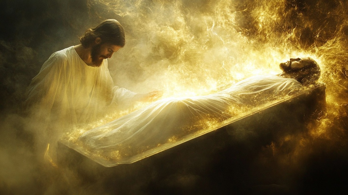 Создано на основе запроса: Jesus and Does the Soul Suffer During Cremation, creates a picture that is both real and imaginative