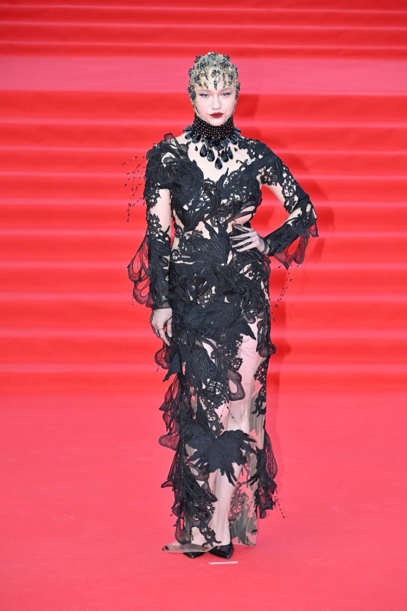Кажется, это Александра Киселева ("Министерство всего хорошего", "Игры"). Хотя можем ошибаться. Нарядно, конечно... Фото: Михаил Фролов, Комсомольская правда//KP.RU https://dzen.ru/id/6232fceaae10d56457313636