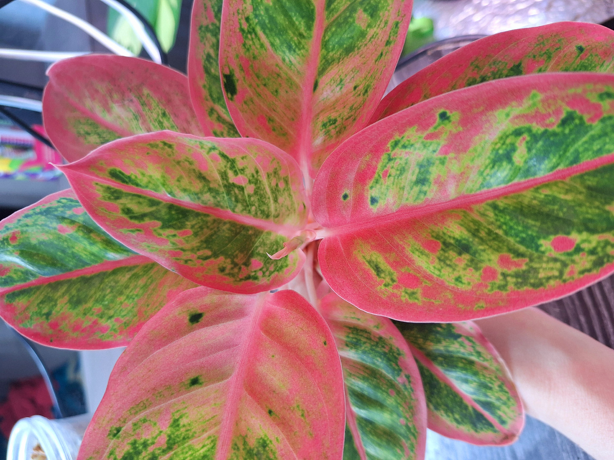 Друзья, привет. Сегодня расскажу о аглаонеме Сальмон Фэнтези. Когда я её купила, она была красивым растением, но через месяц у неё отгнил листик, причём не снизу, а посередине. Я, конечно, зачистила всю гниль, но аглаонема потеряла всю свою красоту, поэтому принято было решение переукоренить растение. Но и тут меня ожидал сюрприз: после того как я отделила аглаонему от основания и поставила укореняться в мох, неожиданно она выдала мне цветонос. Цветение отнимает много сил у растений, а у аглаонемы даже корней ещё не было. Попортила она мне много листьев, но все таки нарастила небольшие корешки и была пересажена в горшочек с фитильным поливом. Сейчас, когда аглаонема обжилась в новом горшочке, я решила её пересадить: убрать все плохие листья и посадить поглубже, чтобы на стволике появились корешки. Когда вытащила аглаонему из горшка, то удивилась тому, сколько она нарастила корешков - фитильный полив ей пошёл на пользу) Убрала старый фитильный полив и испорченные листья. Теперь осталос