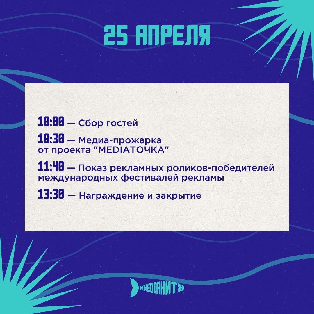 💥Форум «MediaКиТ» продолжается!💥 ✅Программа на 25 апреля: 10:00 - Сбор гостей 10:30 - Медиа-прожарка от проекта "МЕDИAТОЧКА" 11:40 - Показ рекламных роликов-победителей международных фестивалей рекламы 13:30 - Награждение и закрытие 📍Где: ГИКИТ, Правды 13, ауд. 1435 (Малый кинозал) ‼Внимание‼ Каждому участнику или гостю конкурса необходимо оформить персональный QR-код, который станет вашим пропуском на мероприятие. 1. Перейдите по ссылке (qr.gikit.ru/login) и нажмите кнопку «Я гость» 2. Далее кнопку «Оформить» 3. Укажите место посещения: Конкурс «MediaКиТ». 4. Выберите цель посещения: Мастер-класс 5. Установите даты: с 24.04.2025 по 25.04.2025. 6. Заполните персональные данные (проверьте правильность!). 7. После подтверждения заявки вы получите QR-код на электронную почту. 📌 Не забудьте сохранить QR-код на телефоне и предъявить его при входе в вуз!