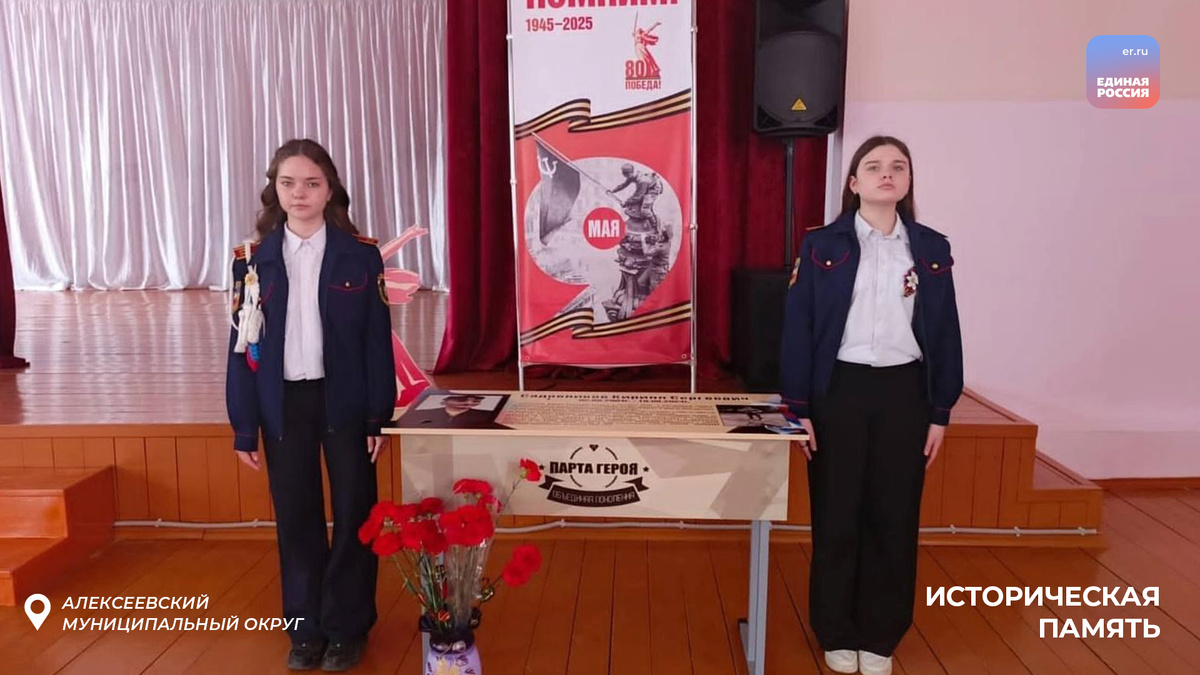 В школе №1 города Алексеевка «Парту Героя» посвятили выпускнику Кириллу Садовникову, погибшему в ходе спецоперации на Украине. Кирилл родился в 2004 году, учился здесь с 2015 по 2020 годы, затем в Бирючанском техникуме. После окончания техникума подписал контракт и отправился на фронт. Погиб 10 августа 2024 года на Купянском направлении, прикрывая своих сослуживцев. Его гибель стала невосполнимой утратой для семьи.