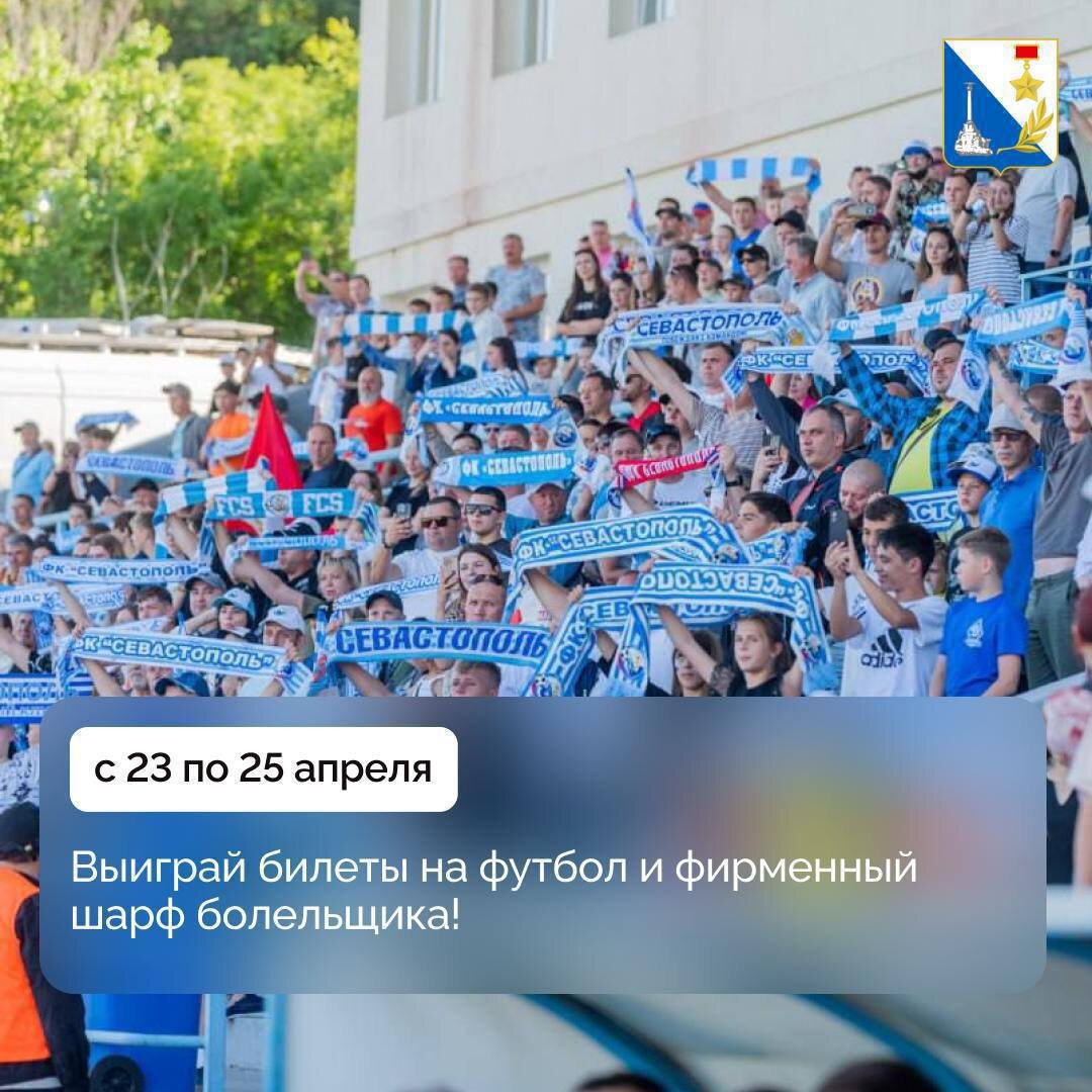 🍂 Последние часы для участия в розыгрыше, где вы можете выиграть 2 билета на футбол и фирменный шарф любимой команды! Матч: ФК «Севастополь» — ФК «Легион» (Махачкала) 26 апреля в 17:00, СОК «Севастополь». Условия в посте. Победителя выберем уже сегодня в 12:00. Успейте поучаствовать! Правительство Севастополя