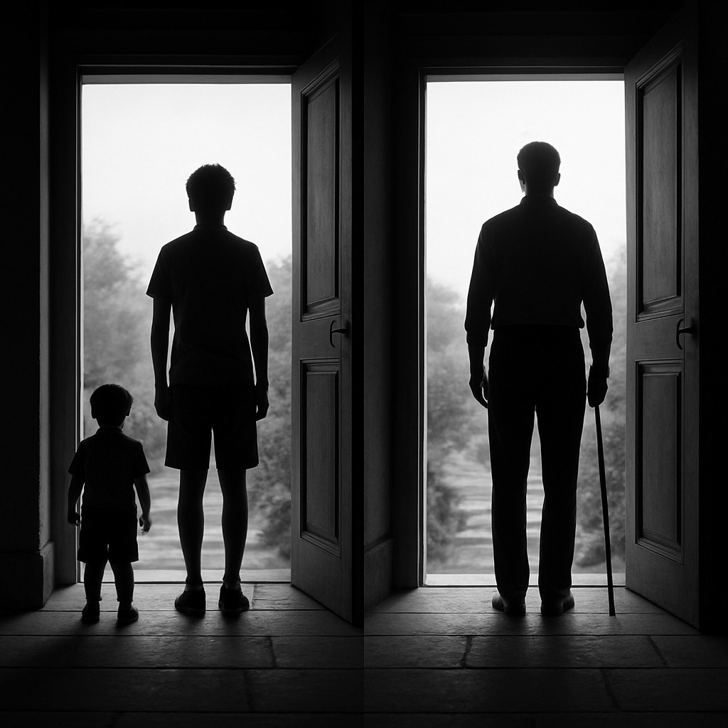 Внуки смеются рядом и человек улыбается, узнавая в их жестах свои.