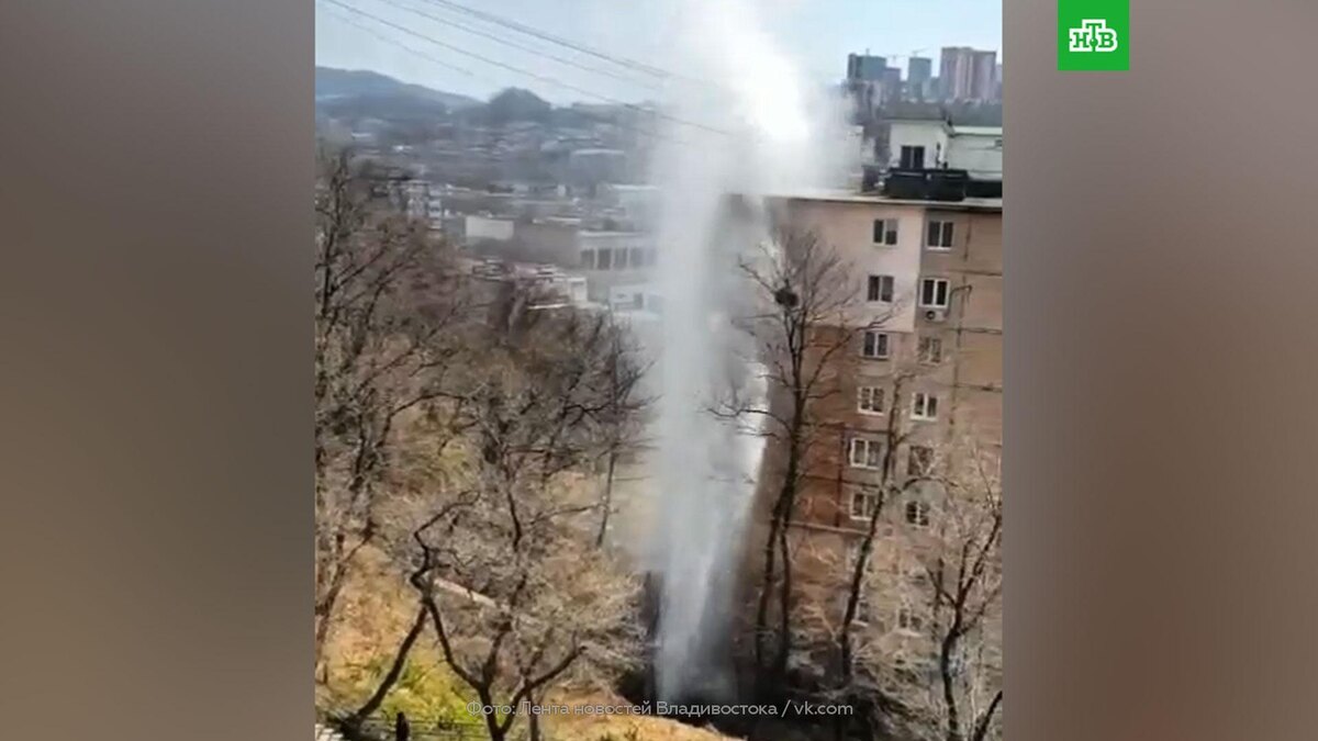 [ Смотреть видео на сайте НТВ ] Во Владивостоке устраняют последствия порыва на трубопроводе горячего водоснабжения, из-за которого фонтан кипятка достигал верхних этажей жилых домов. В соцсетях разлетелись кадры из Владивостока, на которых фонтан воды достигает высоты 9-этажного дома, заливая окна и балконы на верхних этажах. В аварийных службах Владивостока сообщили, что порыв на трубопроводе горячего водоснабжения произошел на улице Русской в районе дома №45. Воду уже перекрыли, аварийная бригада рассчитывает отремонтировать трубопровод и возобновить водоснабжение до конца дня. [ Смотреть видео на сайте НТВ ]