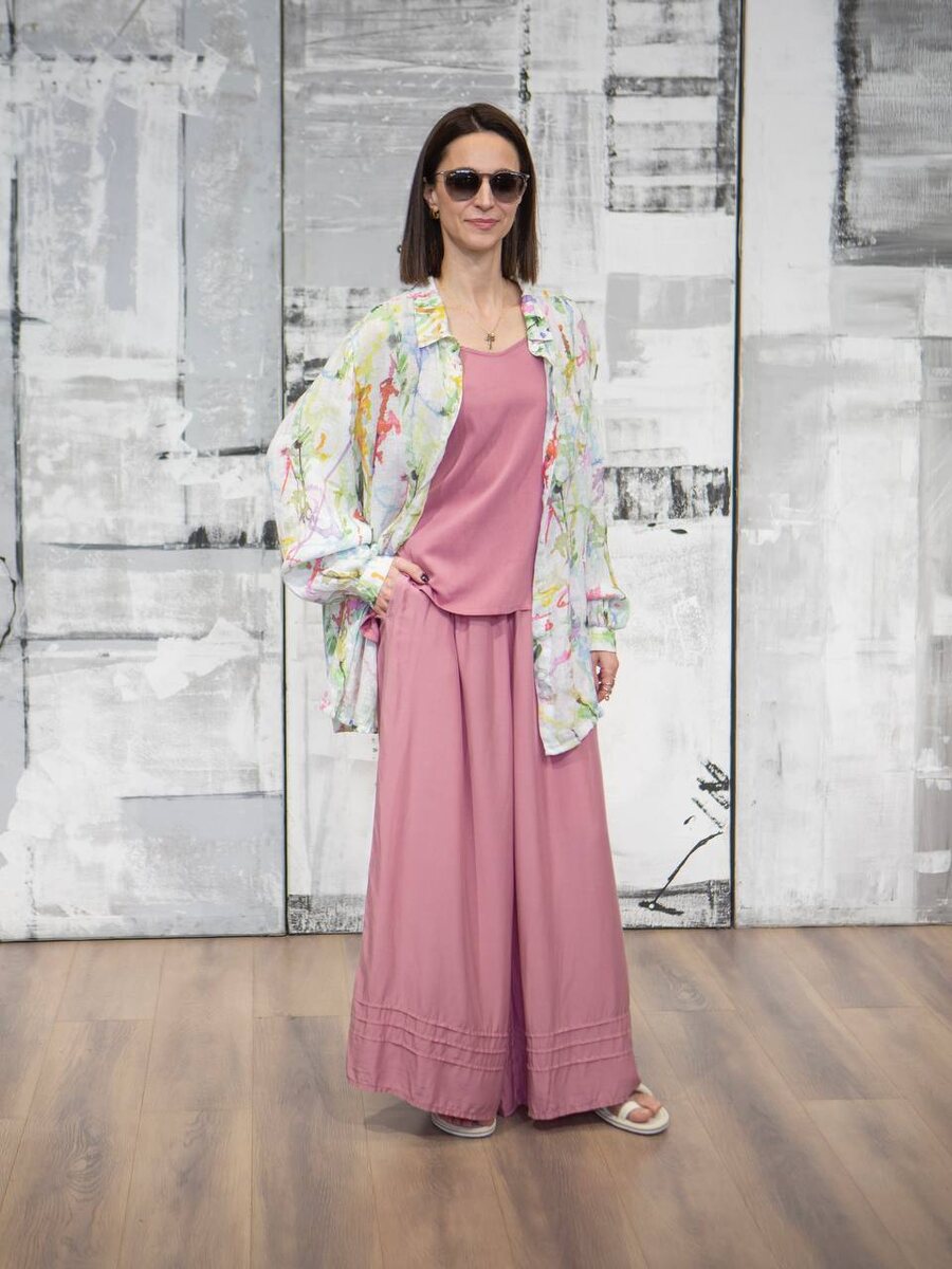 Образ от бренда GRIZAS, представленный в SOLLERY, — идеальное решение для летнего ассортимента. ⠀ Классический топ на тонких бретелях и широкие летящие брюки — выполнены из благородной смеси шёлка и бамбука в актуальном припылённом лавандово-розовом оттенке. ⠀ В дополнение — льняная рубашка свободного кроя с удлинённой линией и акварельным разноцветным принтом, которую можно носить как отдельно, так и в сочетании с костюмом. ⠀ Отличный выбор для клиентов, ценящих натуральные материалы, сложный цвет и универсальный актуальный крой. ____________________ Для оптового сотрудничества пишите нам: 📲-в директ 📲-по номеру 8 800 511 51 95 📲- +7 495 146-92-72 📲Наш сайт — https://sollery.pro ✉️-на почту info@sollery.fashion