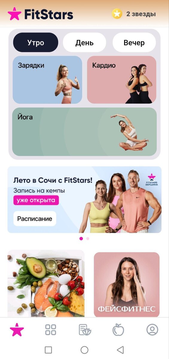 Всю зиму почти каждую пятницу я посещала плавательный бассейн. Немного беспокоилась о своей физической форме. На носу лето. А значит, критически себя оценивать в зеркале придётся не только по пятницам. Последнее время, а точнее с четверга прошлой недели занимаюсь каждое утро физическими упражнениями. Для себя я решила с чего начать и подскажу отличный вариант – это домашние онлайн тренировки с FitStars. Это не приложение, а сайт (платформа). Почему именно FitStars? - Удобно: не нужно тратить время на дорогу в спортзал. Тренируюсь тогда, когда удобно, и как мне удобно! - Экономия средств: мне не придется оплачивать абонемент в спортзал или тренировки с персональным тренером. - Гибкость: можно выбрать время, тренера и вид тренировок, который подходит именно мне – от кардионагрузок до силовых упражнений. - Простота: начинаю с малого, с 7-ми минутной зарядки без дополнительного оборудования и постепенно планирую увеличить нагрузку. - Разнообразие: чтобы не потерять интерес, можно менять ви