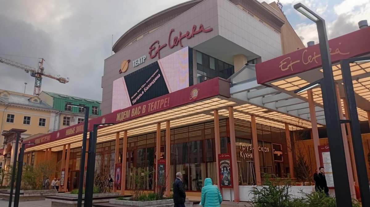 Недавно мы поняли, что ни разу не были в театре Александра Калягина Et cetera. А ведь Калягина любим! Стало быть, надо идти. И не просто на любой спектакль, а чтобы непременно играл Александр Александрович. Таких спектаклей в репертуаре театра сейчас два - "Лица" и "Ревизор.Версия". Посовещавшись, выбрали второй. Удивило, конечно, что Калягин играет Хлестакова - но ведь версия. Мало ли там что. И вот мы в театре Er cetera. Тут, конечно, красота! Очереди на вход никакой не было, несмотря на то, что нужно было предъявлять паспорт. В холле первого этажа вас встречает хозяин театра собственной персоной. Правда, картонный. Но тоже приятно. Его фигуры вообще расставлены по всему фойе - фотографируйтесь на здоровье! Такой небольшой уютный культ личности. Ну и пусть. Лично мы с удовольствием сфотографировались. Очень интересная архитектура фойе - везде какие-то переходы, лестницы, зальчики. Есть музей и, разумеется, буфет. Но если ни разу в этом театре еще не были, не спешите сразу за чашко