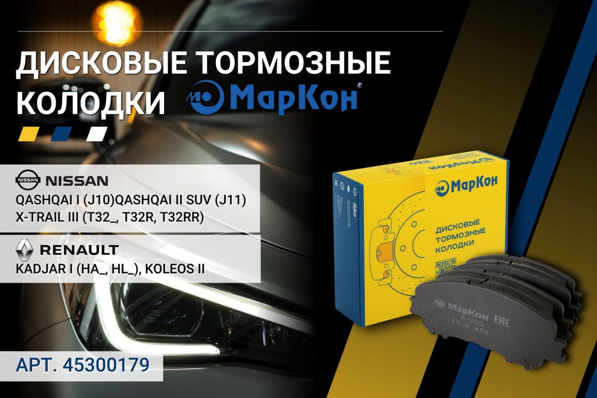 ▶️Колодки тормозные "МарКон" передние арт.45300179 на NISSAN и RENAULT