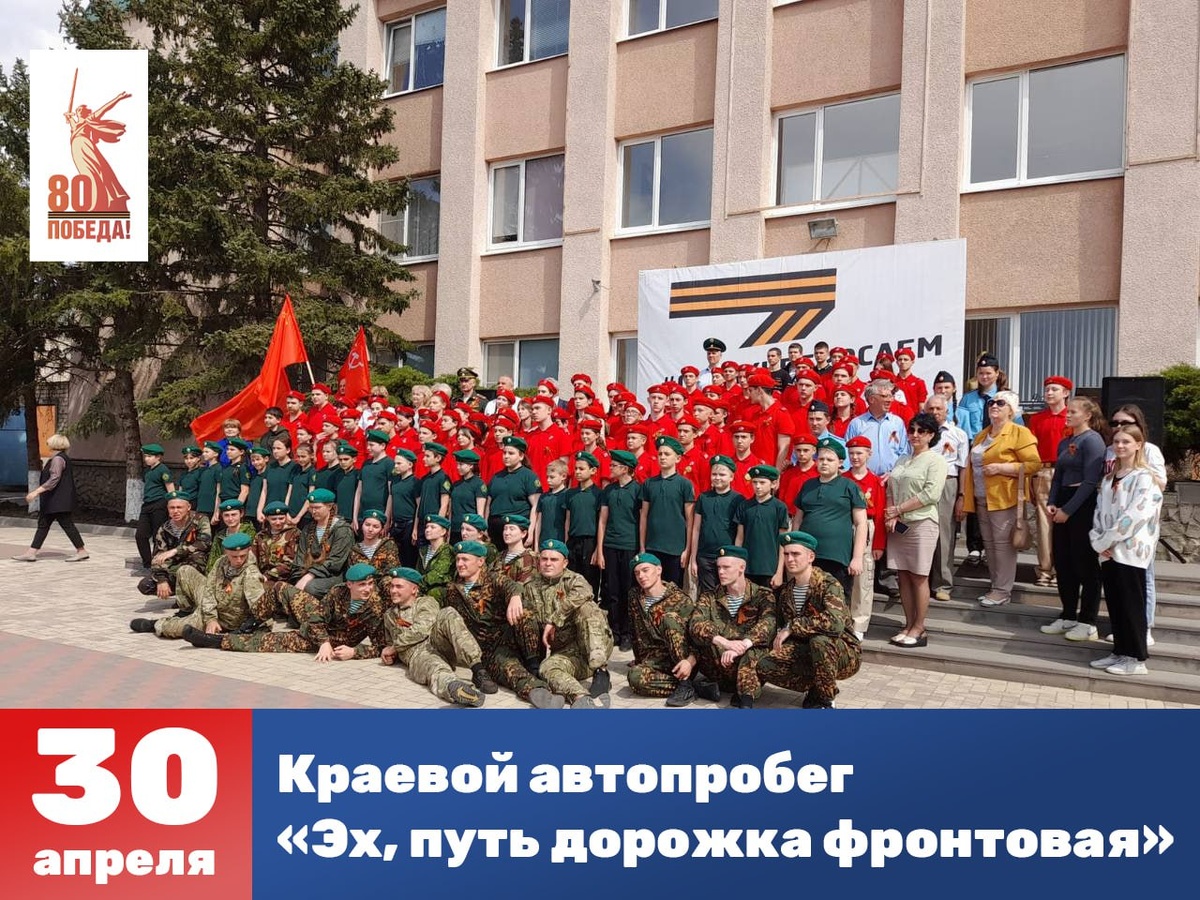 30 апреля в 12:00 на площади администрации Андроповского округа, Краевой автопробег: «Эх, путь дорожка фронтовая», Акция: «Знамя Победы» посвящённые 80-летию Победы в Великой Отечественной войне